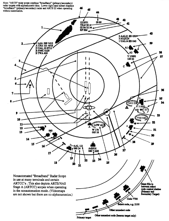 RADAR DATA PROCESSING Radar data processing provides an automatic display of aircraft identification, altitude, speed, velocity vector (which indicates track direction of the aircraft), and special conditions having to do with the aircraft status; i.e., emergency or radio failure. Also displayed on the radar scopes are weather returns, high terrain, and a feature called Conflict Alert. Conflict Alert consists of the detection of impending infractions of safe separation limits between aircraft and will alert the controller to a potential violation. Another safety feature is the En Route Minimum Safe Altitude Warning (EMSAW). It is incorporated into the Center's computer system and alerts the controller to the potential intrusion of an aircraft into airspace that has terrain at or near its altitude. All incoming data from the radar antennas to the computer system are recorded on magnetic tapes and can be saved indefinitely for future analysis. Having this recall feature has also greatly assisted in the search for aircraft that have become lost or overdue. Occasionally, we are called upon by the Air Force Rescue Coordination Center in Illinois to assist in its search. By "replaying" these tapes, the computer will print on a high speed printer a graphic plot of an aircraft's flight path as flown through the Center's area. We then relay these positions to the Search and Rescue Center (SAR), who, in turn, initiates its search with this data. This program has been a major breakthrough in search and rescue planning and execution and has saved thousands of man-hours and dollars, plus many lives, as SAR forces are able to concentrate its efforts in the vicinity of the last known radar position. FAA Radar Analysis History The FAA has been actively involved with Radar Analysis since the advent of radars into the commercial aviation environment. Over the decades, several software applications have been developed to assist technicians and specialists in analyzing radar systems to ensure safe operation of private and commercial aviation. Developers from outside resources and agencies such as the United States Air Force and its 84th RADES Evaluation Squadron, along with numerous universities and individuals within the FAA community have designed and developed numerous radar analysis programs. The first radar analysis programs came into being in the late 1960s and early 1970s to accommodate the integration and optimization of the Common Digitizer (Model 1) or CD-1s. The only available computing power was at the ARTCCs. In 1994, the National Communications System's Engineering Division and its associated Radar Branch, AOS-520,decided to undertake the tremendous task of standardizing radar analysis software as well as developing a user-friendly suite of radar analysis tools. The Radar Intelligent Tool (RIT) project provides a much needed focal point. Ultimately, it will be the only sanctioned radar analysis tool delivered by the FAA. It provides configuration management, baseline control, quality assurance for the delivered products, a common set of development tools, a standard design approach, a standard design structure, a standard programming language, and standard operating system or environment. Radar Services and Procedures 1-2-1. Radar a.